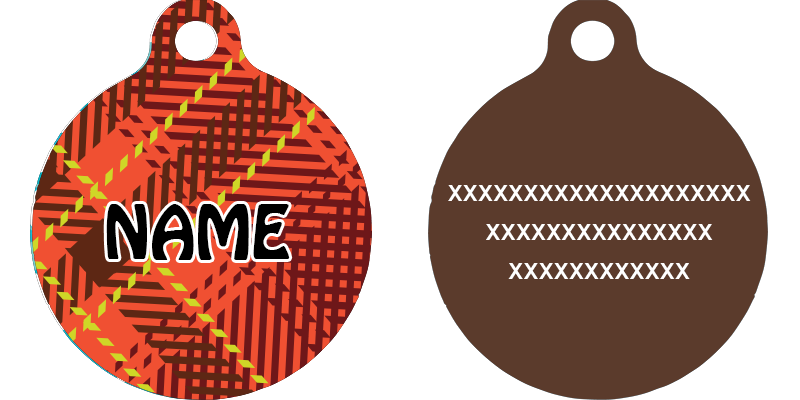 This Red Kilt Plaid dog ID Tag is customizable with your information on the front and back. Match up this tag up with a corresponding collar, lead, harness, Ding Dog Bell, and more. Or simply start out with this tag to keep your dog safe in case they escape or are lost